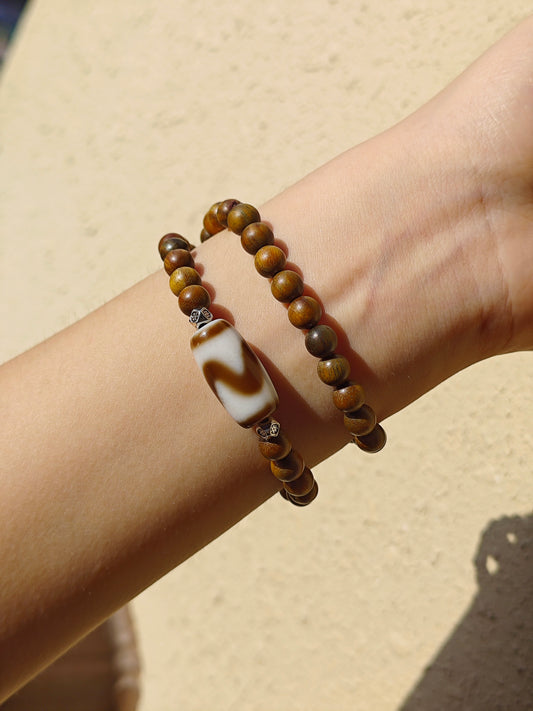 Tiger Tooth Dzi and Green Sandalwood Double Wrap Bracelet